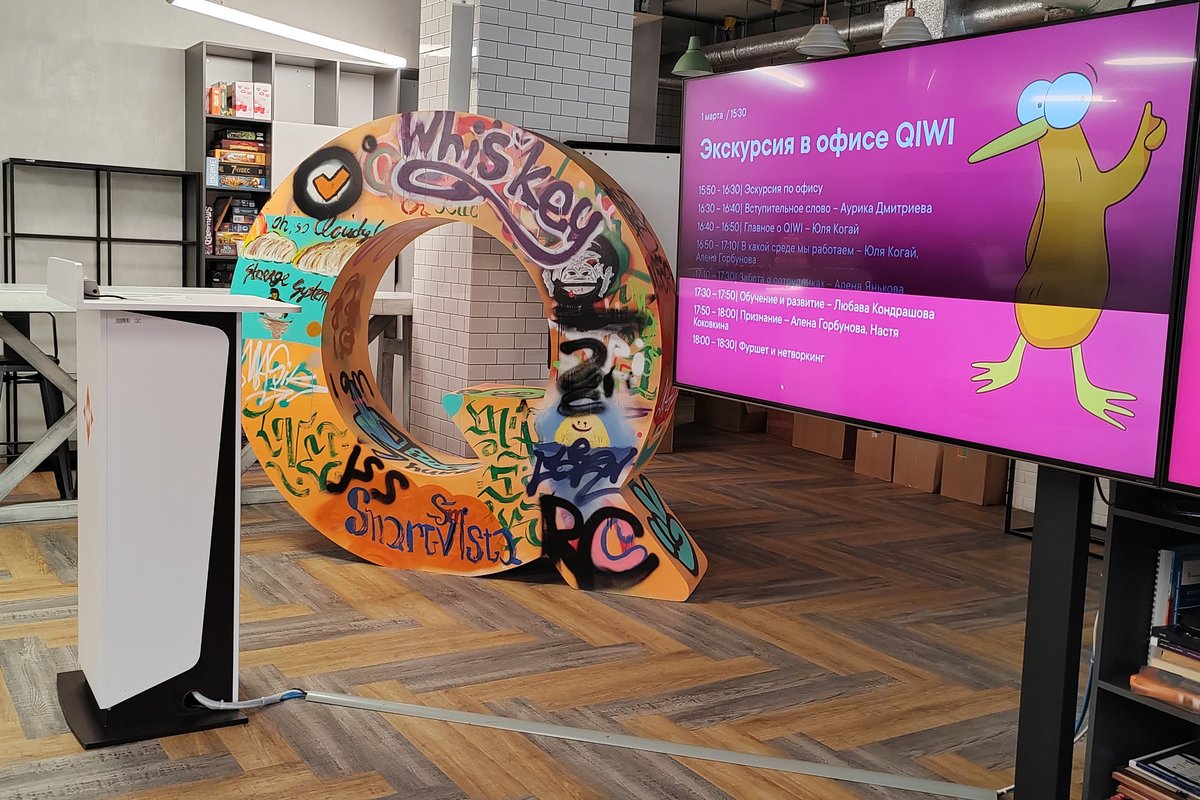 Сначала наши коллеги посетили увлекательную экскурсию по офису QIWI, цель которой была познакомить гостей с историей компании и ее внутренним устройством, показать организацию рабочего пространства и зон отдыха. Экскурсия дала возможность погрузиться в атмосферу QIWI и проникнуться той философией, о которой мы услышали чуть позже.
