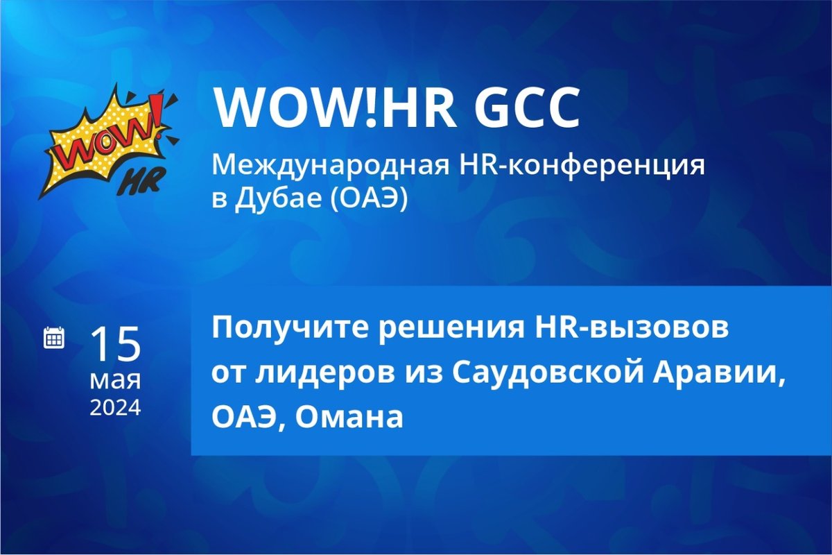 WOW!HR GCC Conference — международная конференция в сфере управления персоналом, призванная объединить лучших HR-специалистов из стран Персидского залива, Центральной Азии, России, пройдет 15 мая 2024 г. в г. Дубай (ОАЭ).