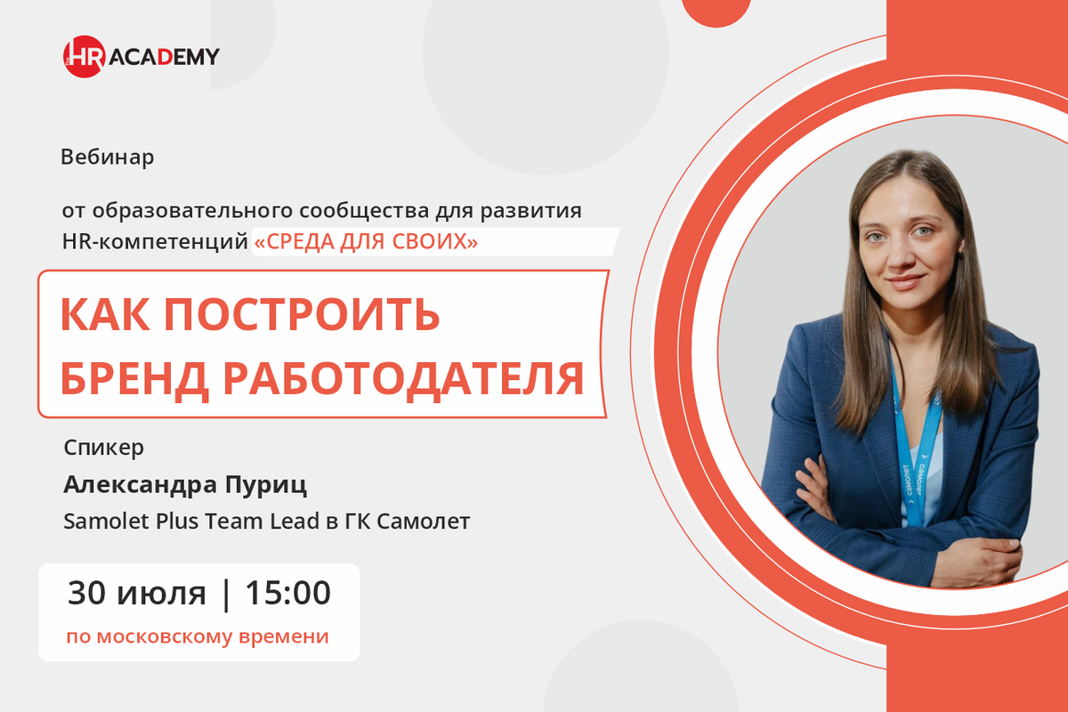 30 июля в 15.00 по московскому времени приглашаем на вебинар-дискуссию от Образовательного сообщества для развития HR-компетенций «СРЕДА для своих» по теме «Как построить бренд работодателя».