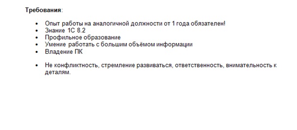 На это работают блоки «Требования» и «Обязанности». Поговорим про каждый отдельно.