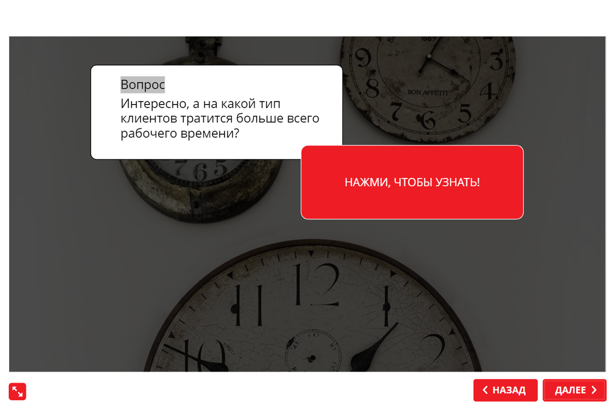 Прохождение каждого обучающего курса завершалось тестированием, что помогало как самим сотрудникам оценить степень своей подготовки, так и руководству понимать эффективность обучения.