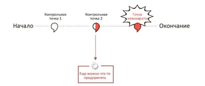 Другими словами, определите точку невозврата: событие, дату после которых уже нельзя будет ничего исправить без потери качества в установленные планом-графиком проекта сроки.