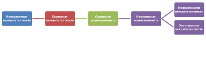 - Осознанная некомпетентность – новичок понимает, какими именно навыками он не обладает и хочет их освоить;