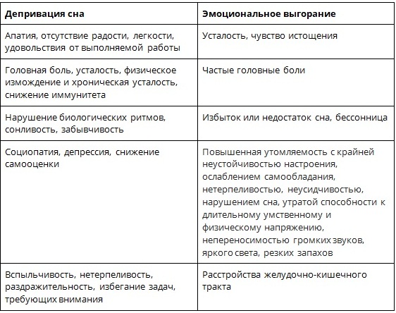 Симптоматика синдрома эмоционального выгорания очень схожа с симптомами депривации сна: